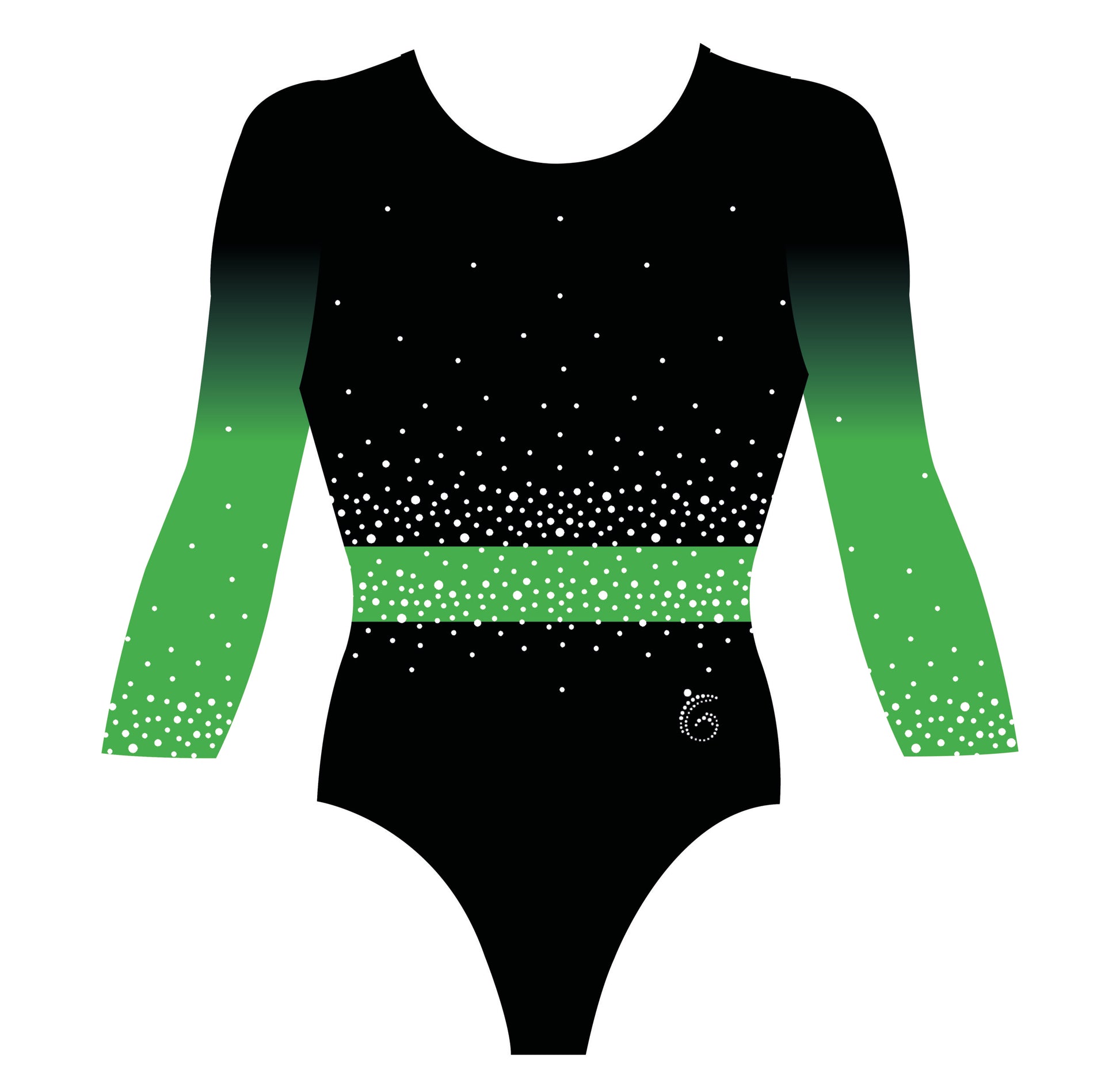 The Custom Quick Belted Brilliance leotard in three-quarter sleeve is a perfect competition leotard option for Levels 1-3, Xcel, High School team and beyond! The rhinestone design on the front, back and sleeves of this leotard offers the right amount of elegant sparkle classic silhouette! Each leotard includes a coordinating scrunchie.
