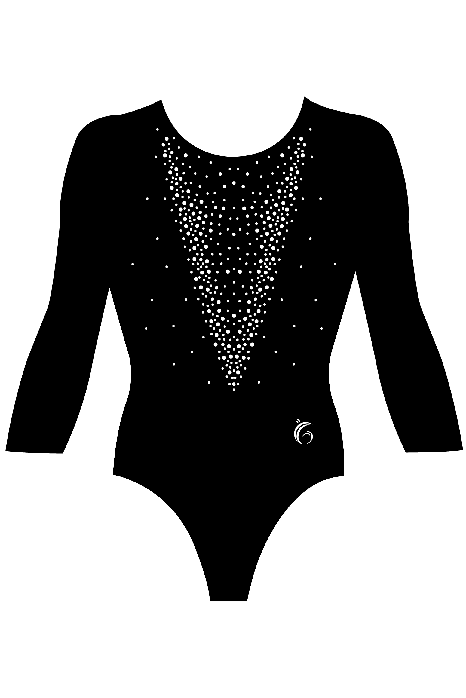 The Custom Quick Ship Custom Quick Ship Divine Sparkle leotard in long or three quarter sleeve is a perfect competition leotard option for Levels 1-3, Xcel, High School teams and beyond! The rhinestone design on the front of this leotard offers the right amount of elegant sparkle. This leotard includes a coordinating scrunchie.