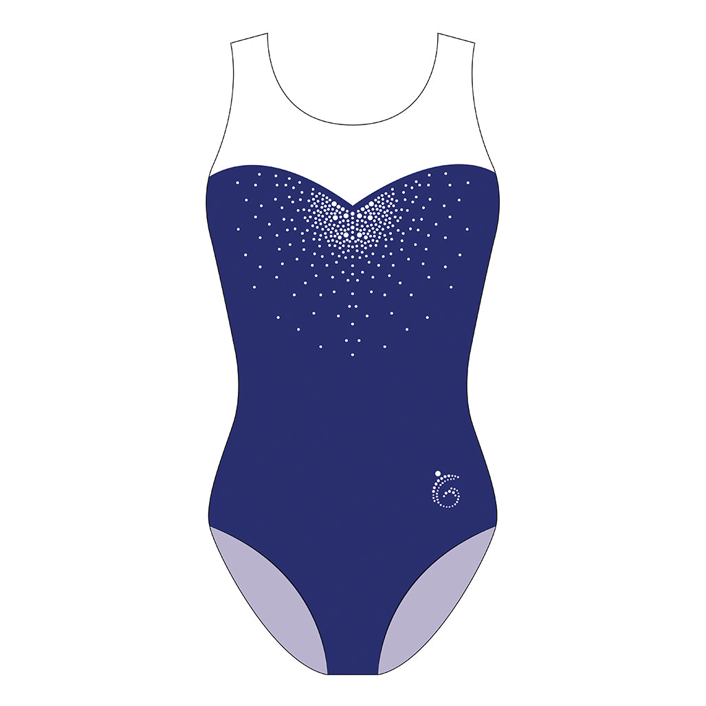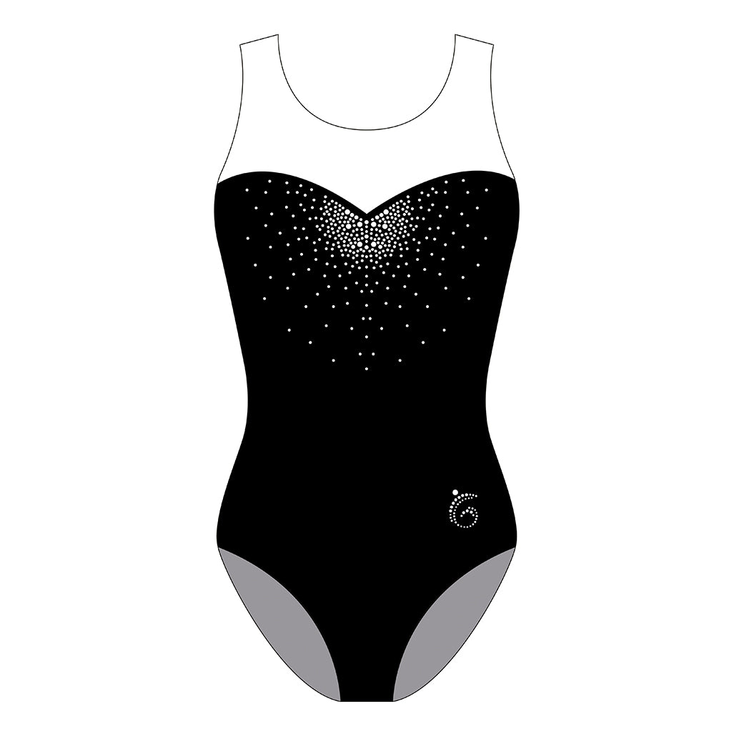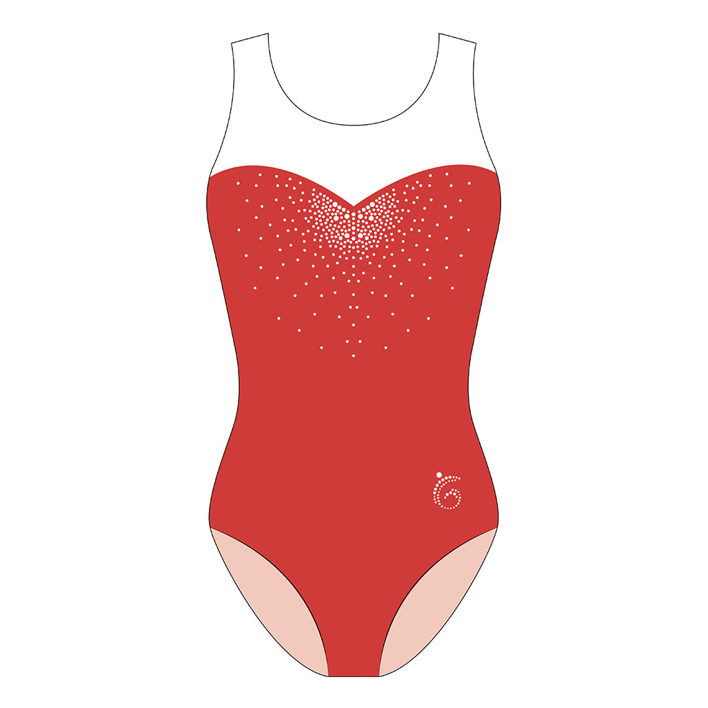 The Custom Quick Ship Sweetheart sleeveless leotard is a perfect competition leotard option for Levels 1-3, Xcel, High School teams and beyond! The sequin design on the front of this leotard offers the right amount of elegant sparkle classic silhouette! Each leotard includes a coordinating scrunchie.
