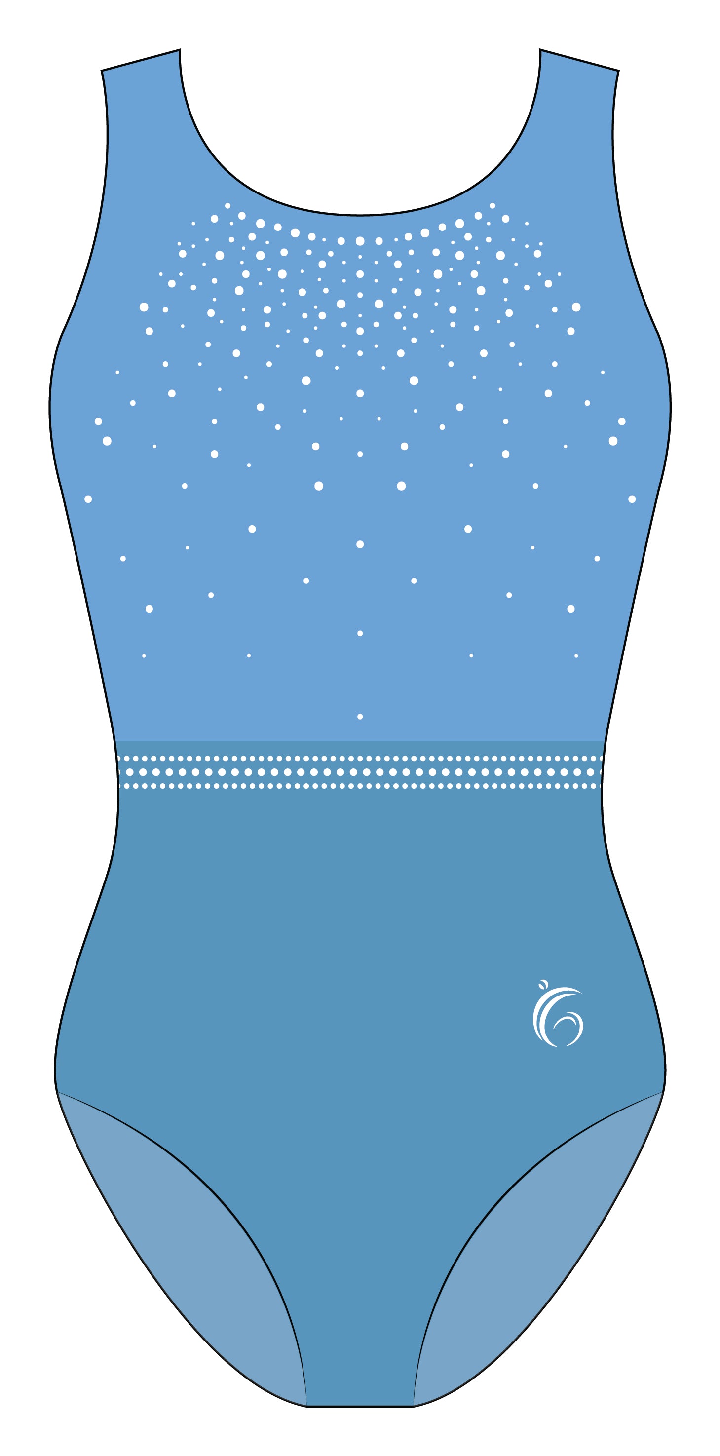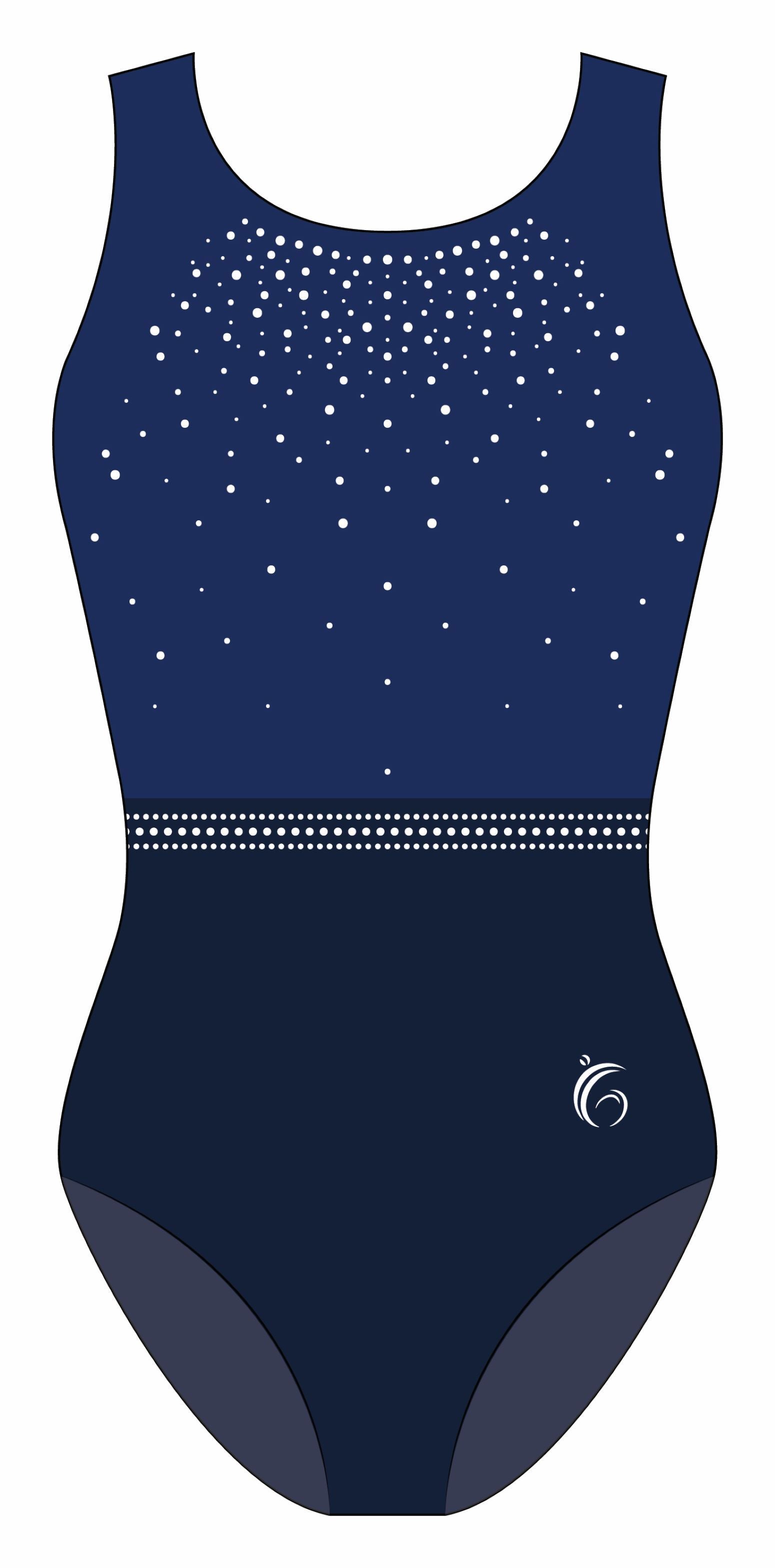 The Custom Quick Tonal Sparkle leotard in sleeveless is a perfect competition leotard option for Levels 1-3, Xcel, High School teams and beyond! The rhinestone design on the front, back and sleeves of this leotard offers the right amount of elegant sparkle. This unlined leotard includes a coordinating scrunchie.